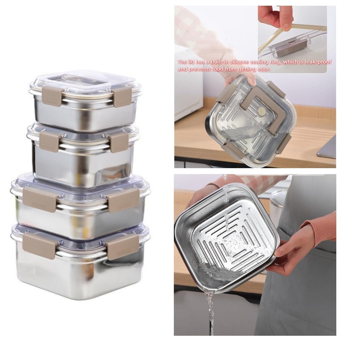 Lunch Box Stainless Steel: This lunch box is made of 304 stainless steel + ABS + silicone, ensuring better safety and health compared to plastic alternatives.